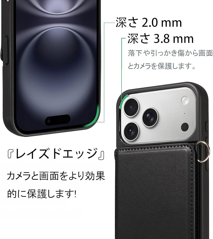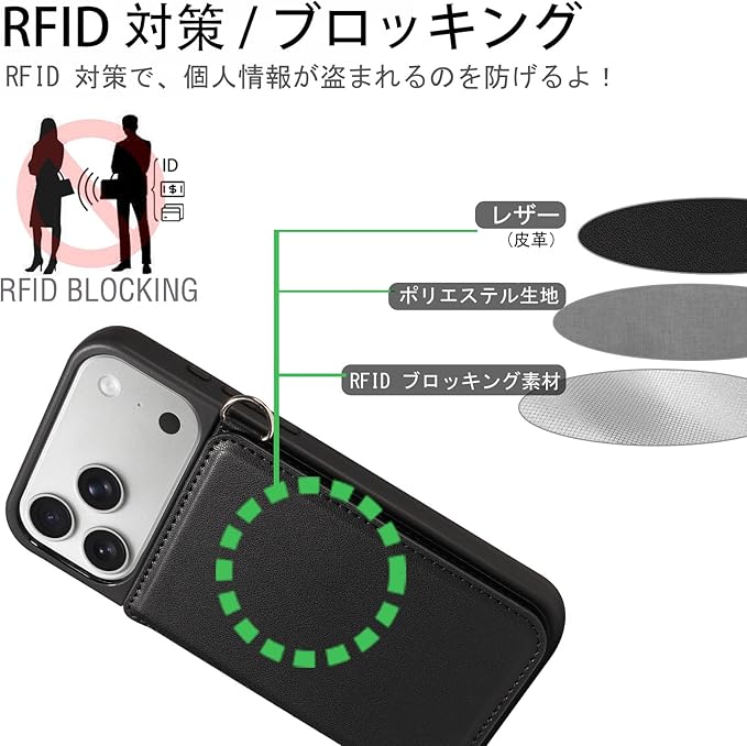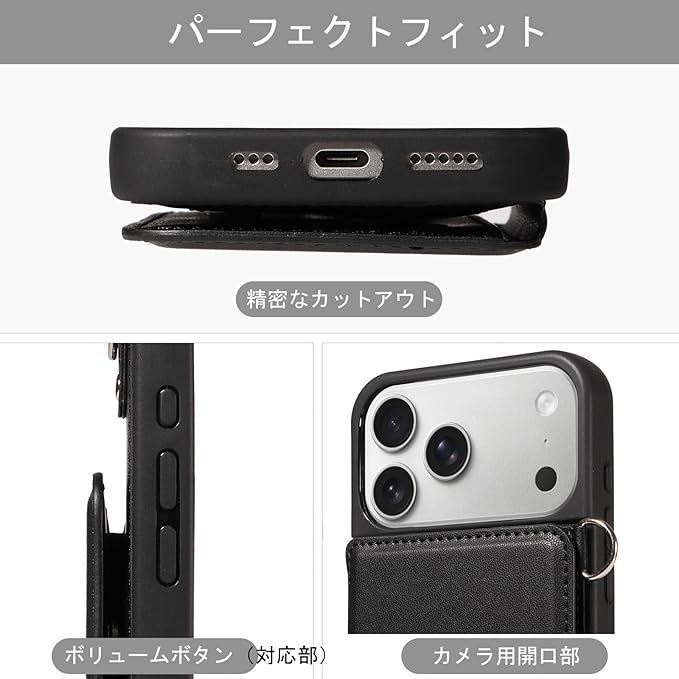 【実用性高】①対応iPhone 17 Pro Max ケースの精密なデザインで、ケースを付けたまま、音量ボタン、電源ボタン、コネクター等の機能が自由に使えます。②カードスロットで日常のカードを収納、落下保護機能でスマホを衝撃から守り、マグネットクロージャーで簡単に開閉できるため、携帯性と安全性を両立します。③ハンズフリーデザイン!取り外し可能なリストストラップが付いているので、買い物や外出時に手元を空けられ、持ち運びも簡単です