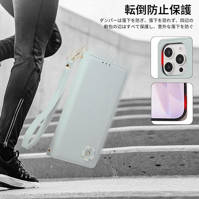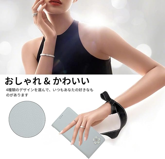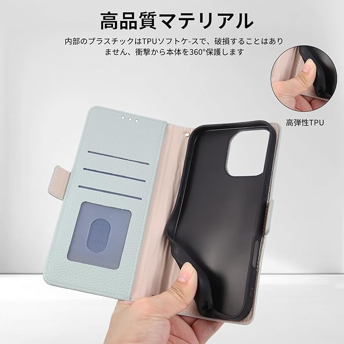 【上質な素材 全面保護】上質な「PUレザー」を使用して、丈夫で柔らかい着心地で肌触りがとてもいい、長く愛用できる。本体固定部分にはやわらかいTPU素材を採用しており、柔軟性に優れていて伸びやすく、着脱がしやすい。フラップはマグネット式のため固定しやすく、閉じたままでも通話できる。マグネット式で片手でさっと開け閉めすることもできるから、混雑している電車や片手に荷物を持っているときにも使いやすい。