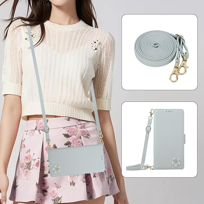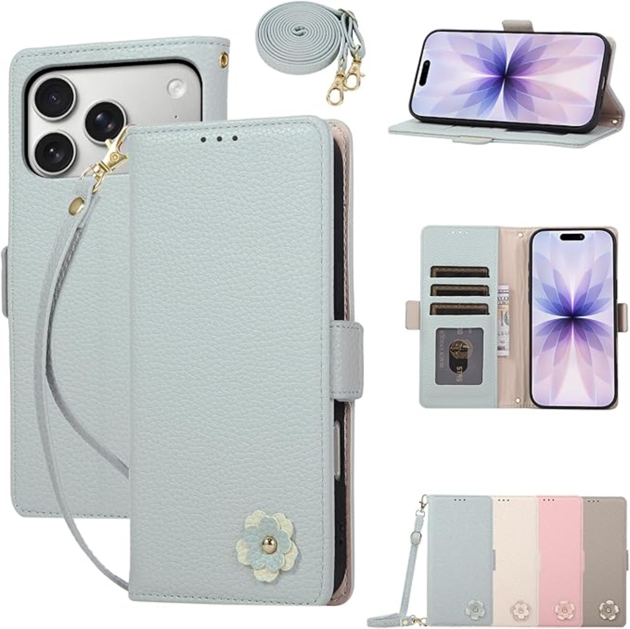 用の iphone 17 Pro Max ケース 手帳型 ショルダー さくら スマホケース いphone17promax ケース 手帳型 オシャレ 財布型 カード収納 携帯ケース iphone17promax ケースカバー ストラップ付き スタンド機能 耐久性 軽量 アイフォン17pro max 手帳型ケース 可愛い 人気 女性 上品 桜の花 贈り物(ブルー)