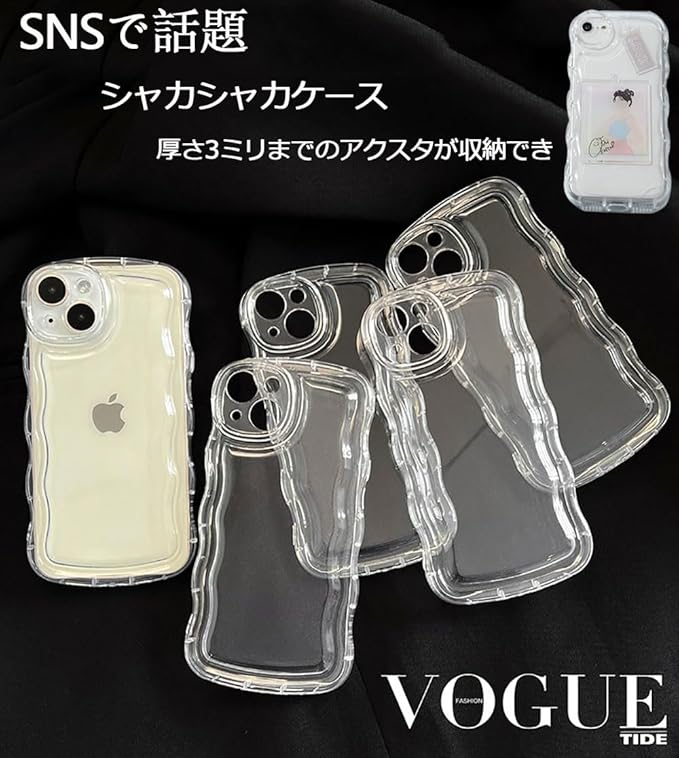 兼用 スマホケース iPhone 17 Pro Max ケース ウェーブ 韓国 クリア おしゃれ SNSで話題 アクスタ収納 人気 シャカシャカケース 透明 可愛い シンプル ソフトケース 滑り止め 耐衝撃 ストラップホール付き アイフォン 17 Pro Max カバー