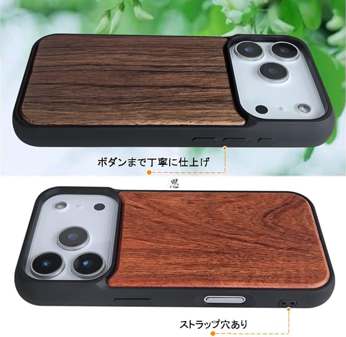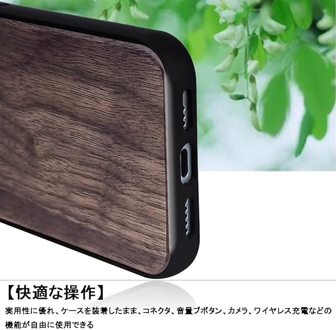 【快適な操作】実用性に優れ、ケースを装着したまま、音量ブボタン、カメラ、コネクタなどの機能が自由に使用できる。木製なので、ワイヤレス充電には対応していません。