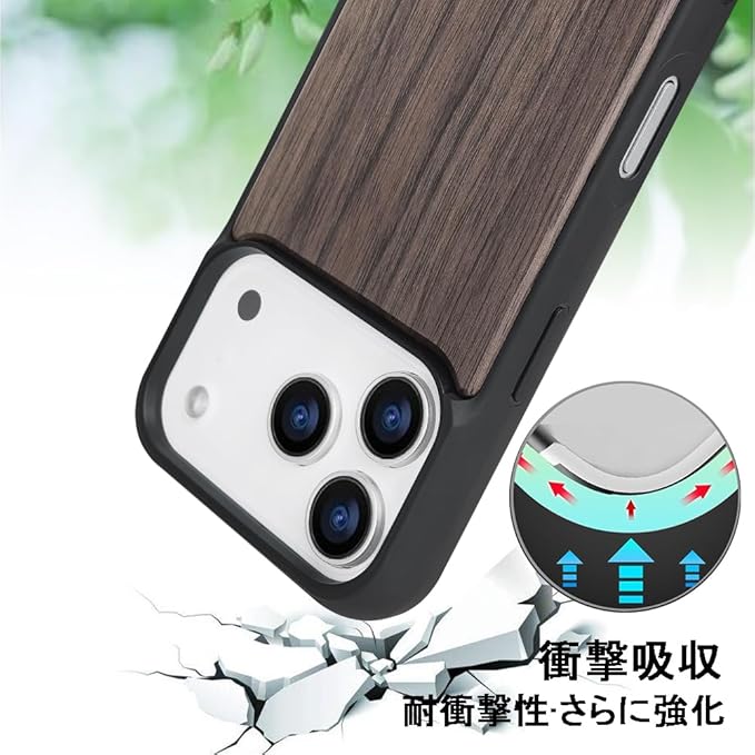 スマホケース 対応 iPhone 17 Pro Maxケース ハードケース 木製 高級 ウッド 衝撃吸収 落下防止 防指紋 携帯カバー ソフトTPUパンバー+ハード木パネル アイフォン17プロマックスカバー (くるみの木)