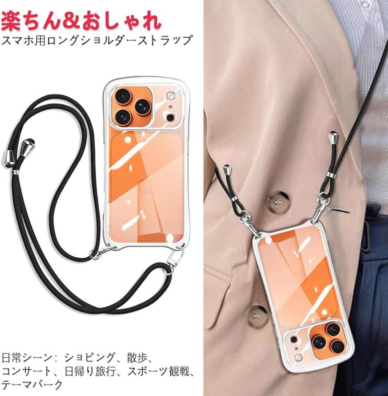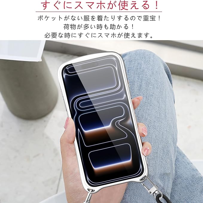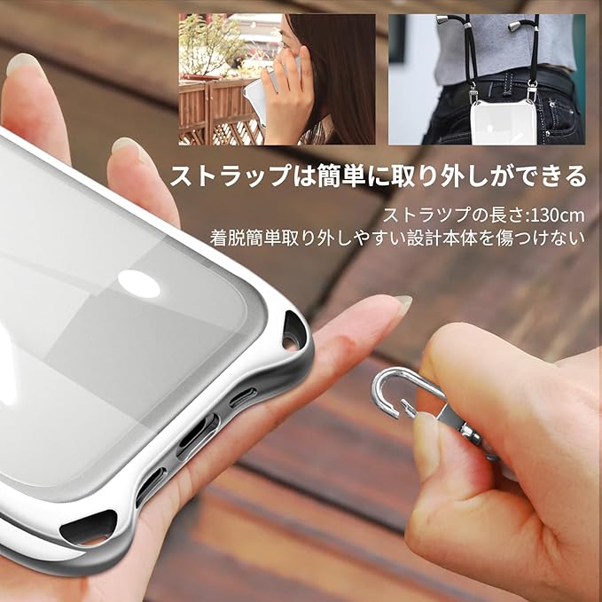 【ネックレスケース】シリコンケースには首から下げられるようにショルダーストラップが付いており、まるでアクセサリーのようにスマホを着用できます。落下防止はもちろん、紛失防止にも役立ちます。 特に旅行や、小さなお子様がいるお母さんにおすすめ、手荷物がある時にスマホを持ち続ける必要がなくなりますし、スマホを落としたり無くしたりといった心配もなくなります、バッグから携帯を取り出す手間がはぶけます。