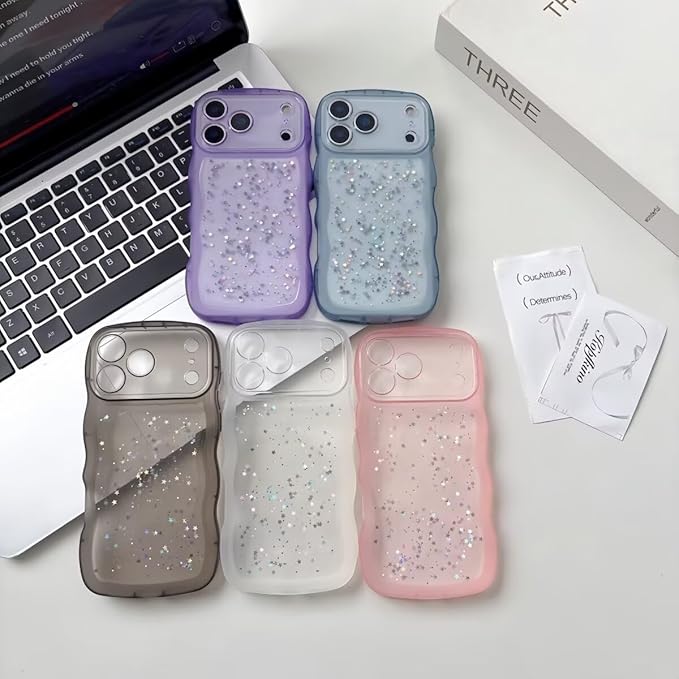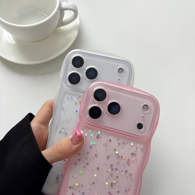 きらきら対応 iPhone 17 Pro Max ケース クリア 透明 ラメ入り 星 キラキラ ウエーブ 波型フレーム かわいい 17 Pro Max 用カバー 大人 可愛い デコレーション 女性 人気