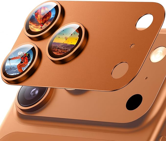 いfor iphone 17 Pro Max カメラ保護 全面保護 9Hサファイアガラス&航空用アルミ合金製 防指紋 高透過率防傷 耐衝撃 露出オーバー防止 - for iPhone 17 Pro Max 専用 オレンジ色