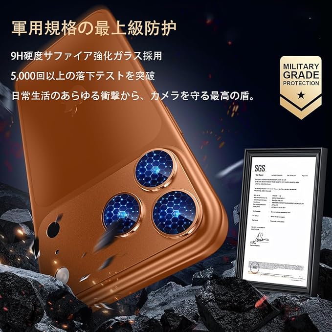 【いfor iphone17 Pro MAX専用 全面カメラ保護】: 最高硬度9H強化ガラスとアルミ合金の一体化構造で、レンズだけでなく台座まで完全に守るいphone17pro MAX カメラ保護カバー。飛散防止設計で割れても安全