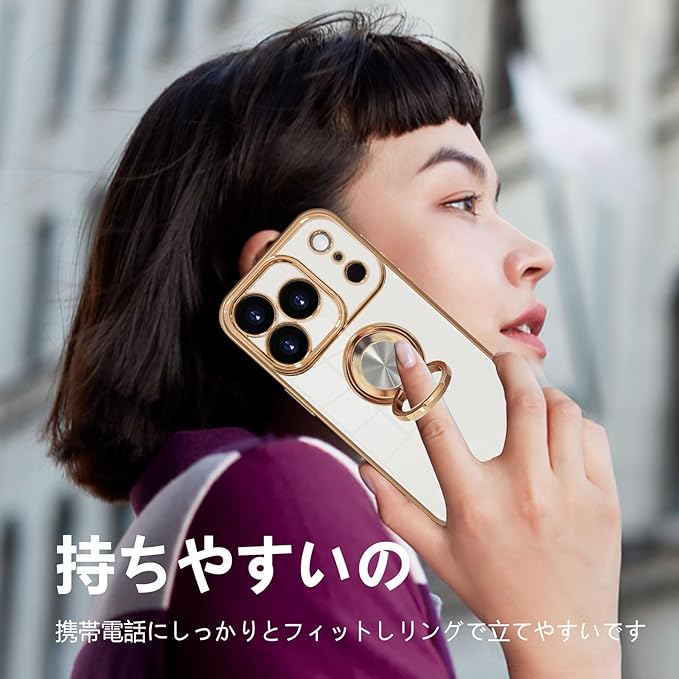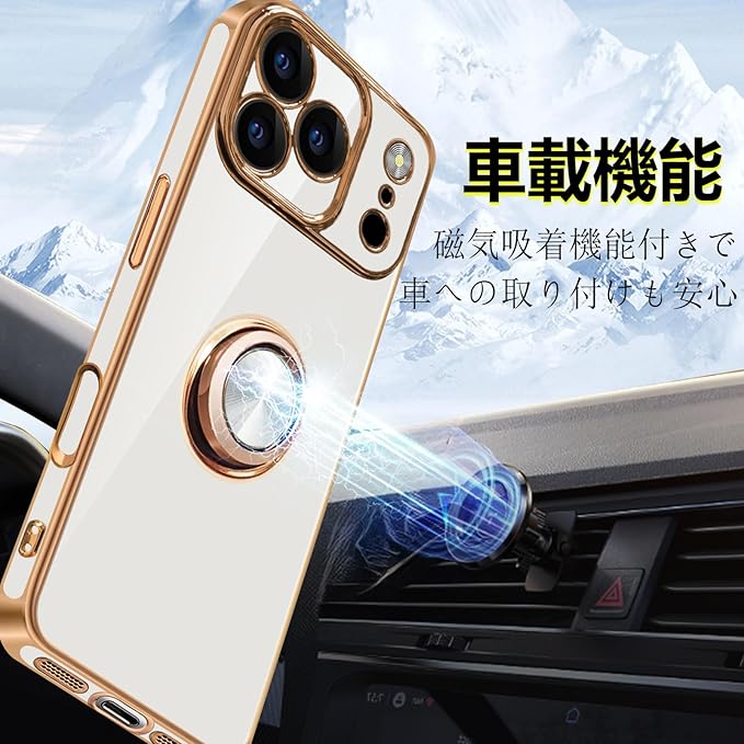 対応iPhone 17 pro max ケース リング 耐衝撃 いphone 17pro max リング付き カバー いpほね17 promax TPU 車載ホルダー ストラップホール付き メッキ加工 スマホケース ホワイト