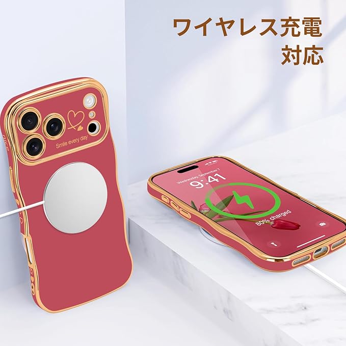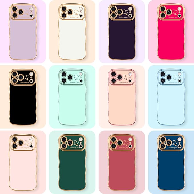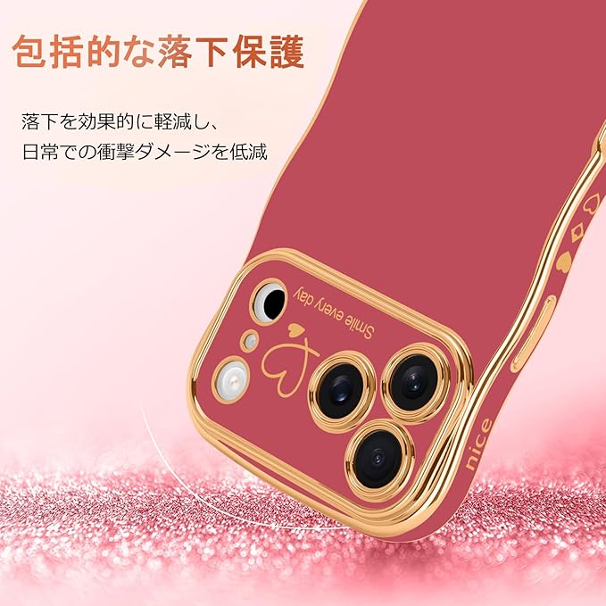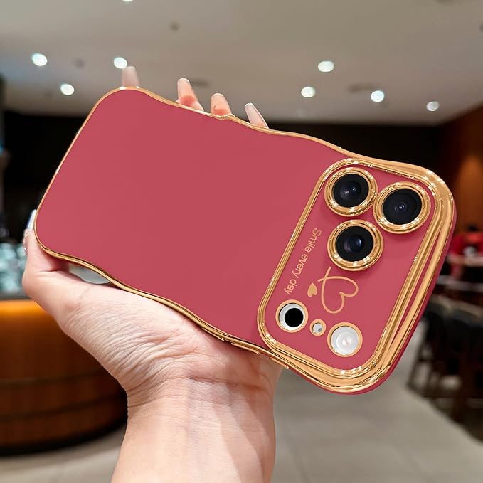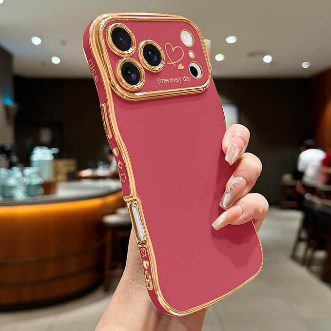 LCHULLE iPhone 17 Pro Max 用 ケース ウェーブ TPUカバー おしゃれ 滑り止め 韓国 可愛い 薄型 軽量 耐衝撃 女の子 人気 レンズを保護 ハート柄 ワイヤレス充電対応 ストラップホール付き アイフォン 17 Pro Max 用 スマホケース (カメリアレッド)