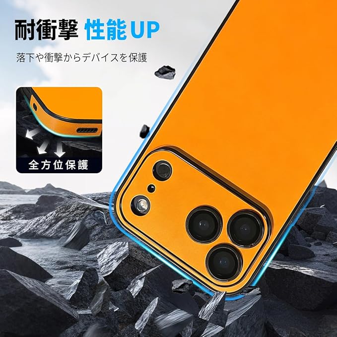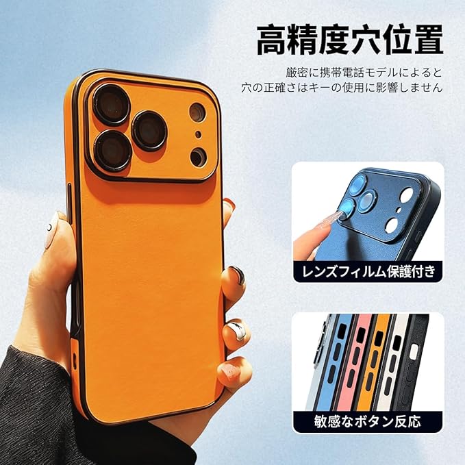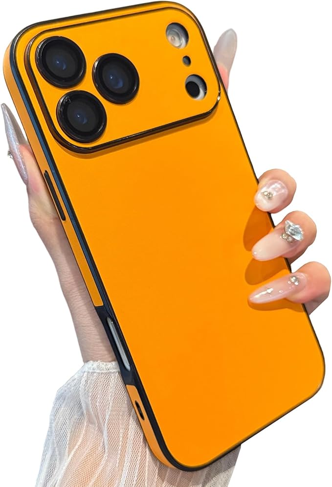高級PUレザー for iphone 17 Pro Max ケース かわいい おしゃれ 韓国 カメラ保護 耐衝撃 人気 スマホケース for いPhone17 ProMax 可愛い シンプル 素皮for アイフォン全面保護レンズプロテクター内蔵 ツートンカラー 衝撃吸収 カップル向け-orange-for iphone17 Pro Max