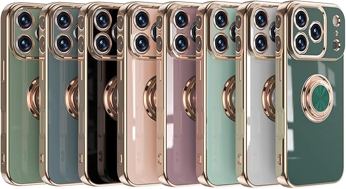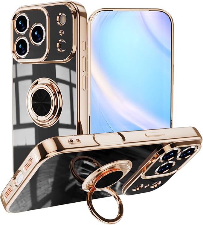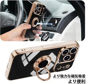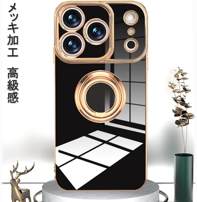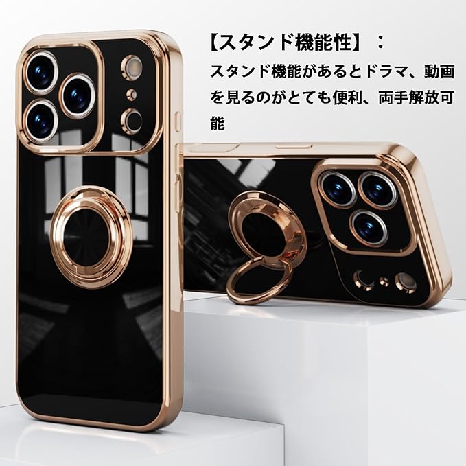 スマホケース 対応 iPhone 17 Pro Max 用 ケース リング付き メッキ加工 レンズ保護 tpu ソフト ストラップホール付き 耐衝撃 スリム おしゃれ 携帯カバー アイフォン17プロマックス 用 ケース (ブラック)