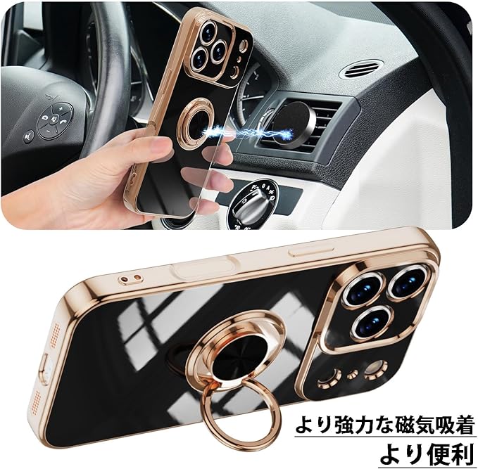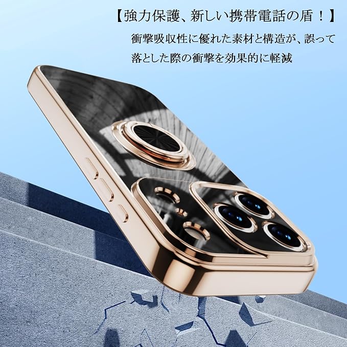 【こだわり設計】リングはケースにしっかり固定されていて、縦置き、横置きどんな角度でも固定できます。レンズと画面より高い立ち上がり有効的にレンズと画面の摩損を防止する。ボダンホール部分はぴったり合うだけではなく、操作しやすい最適のサイズで作られる。