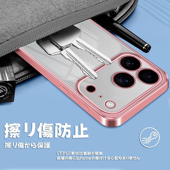 ♥【魅力な透明感】透明な背面はiPhone 17pro maxの本来の美しさを示し、フレームのメッキはよりおしゃれに感じます。高品質のTPUは、優れたTPU材料を採用し、柔軟に変形しない、手触りを防ぎ、指紋の汗を防ぎ、触感が良好である。