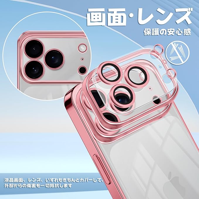 iPhone 17 Pro Max 用 ケース クリア アイフォン 17 pro max カバーカメラレンズ保護付き 透明 iphone17 pro max スマホケース TPU 薄型 耐衝撃 スリム ストラップホール付き ワイヤレス充電対応 6.9インチ アイホン17pro max クリアケース ローズゴールド