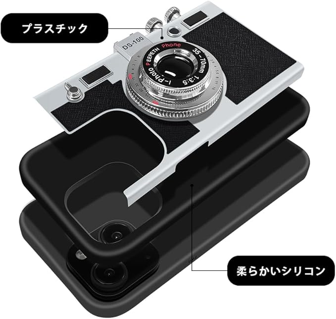 創意なカメラデザイン:これはファンションな3 Dカメラ型デザインのスマホケース。可愛くて、レトロで、デザイン性のあるケース。スタイリッシュだね!