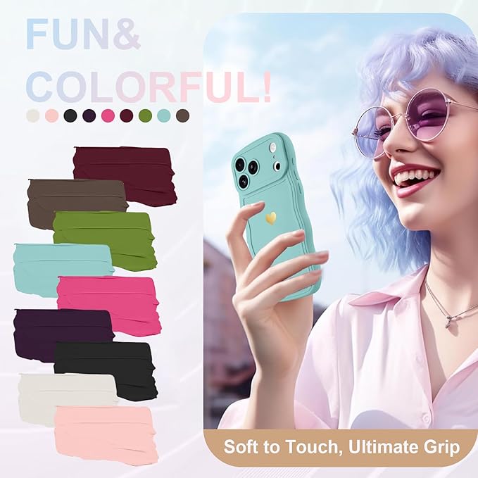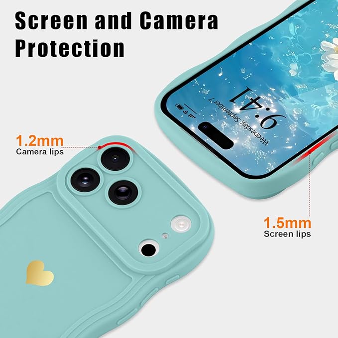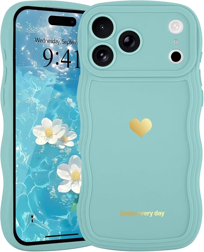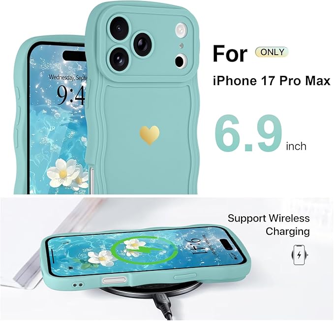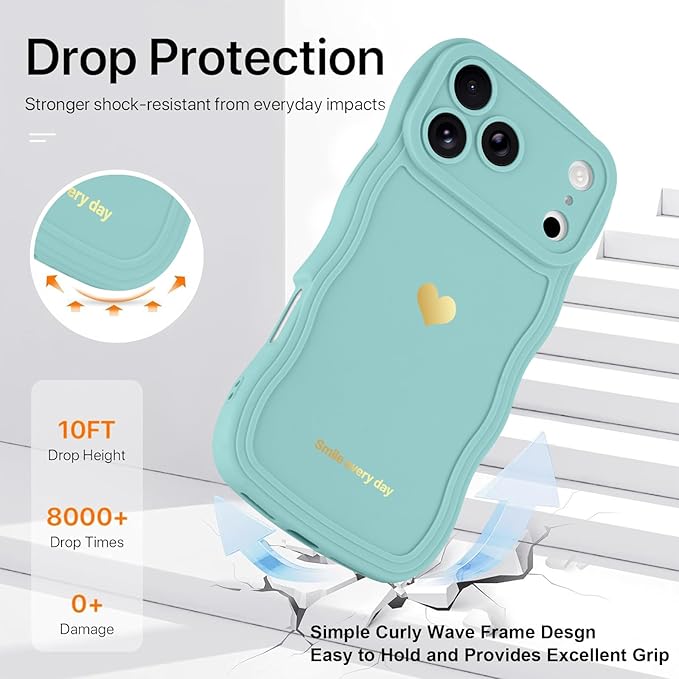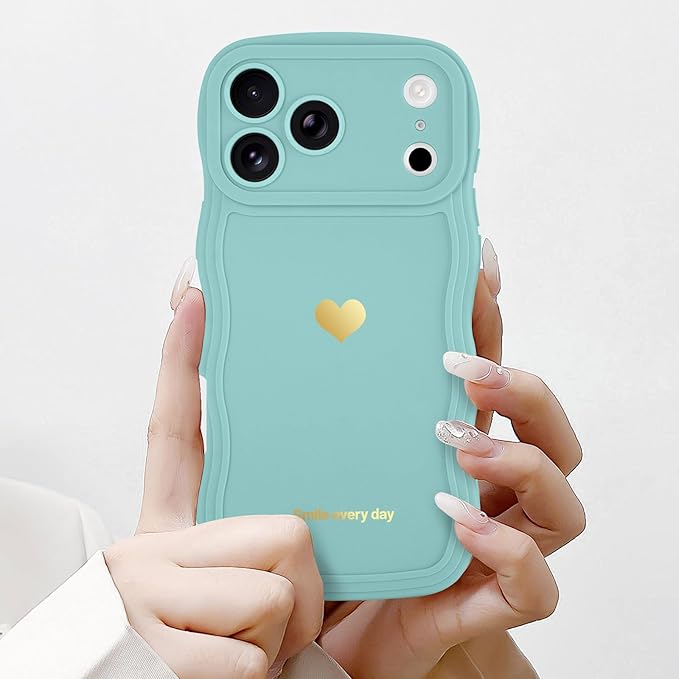 LAPOPNUT iPhone 17 Pro Max 用 ケース ウェーブ ハート おしゃれ 可愛い 韓国 柔軟な TPU 軽量 耐衝撃 落下防止 スマホケース ストラップホール付き 落下保護 衝撃吸収 携帯電話カバー(青)