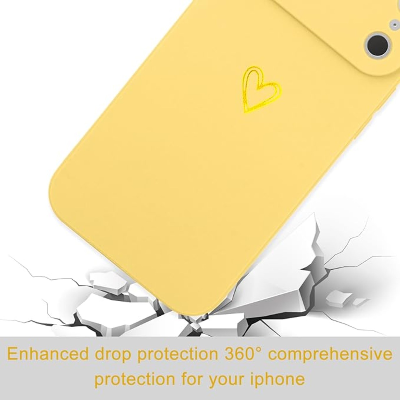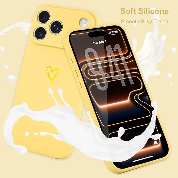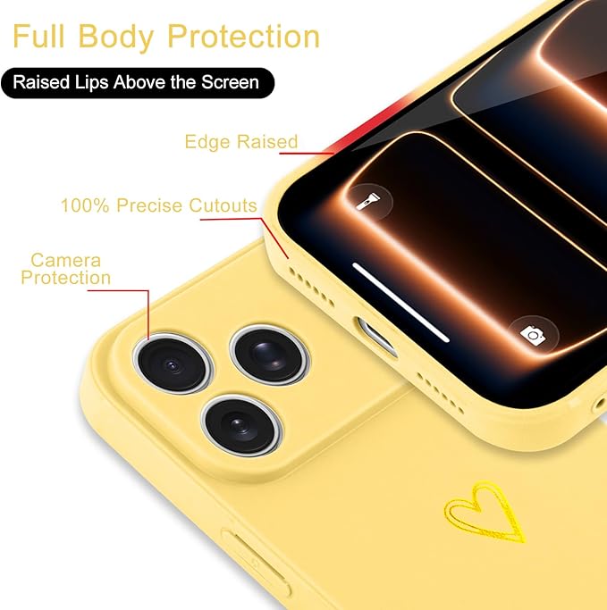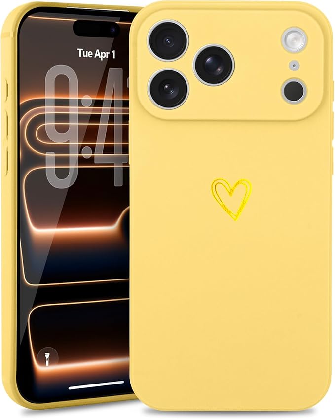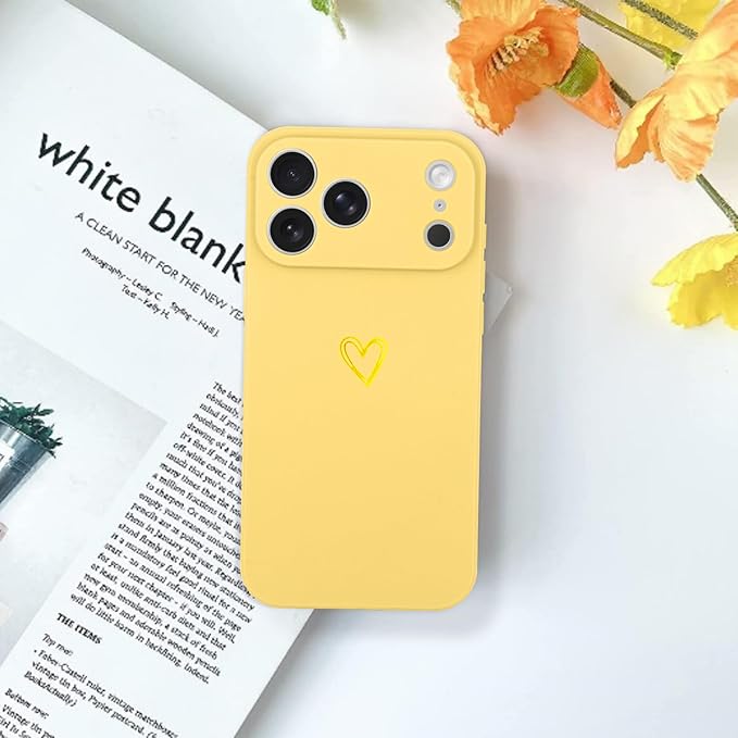 iPhone 17 Pro Max 用 ケース 可愛い ハート おしゃれ かわいい カメラ保護 シンプル スマホケース 女性 女の子用 軽量 耐衝撃 ストラップホール付き アイフォン17 Pro Max対応 スマホカバー(イエロー)