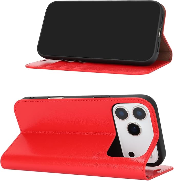 Pelanty for iPhone 17 Pro Max ケース手帳型 for iPhone17 Pro Max 携帯カバー 手作り 本革レザー 財布型カバー カード収納 スタンド機能 耐衝撃 マグネット無し 開閉ベルト無し アイフォン17プロ Max スマホケース【選べる4色】レッド