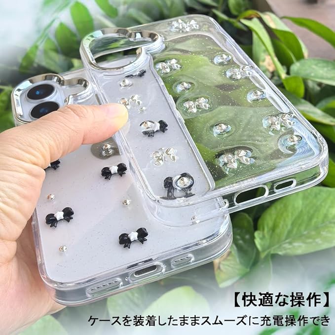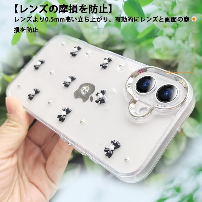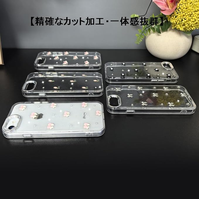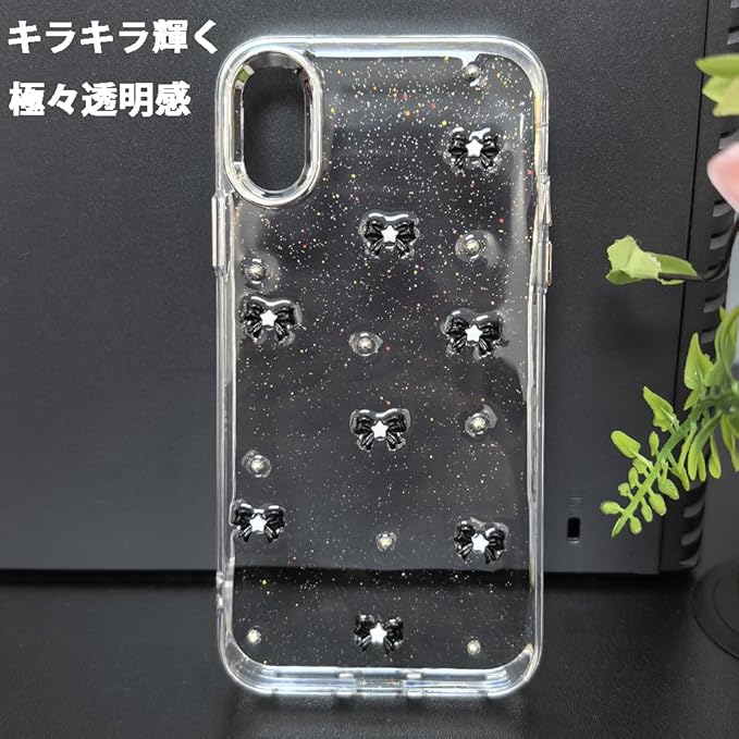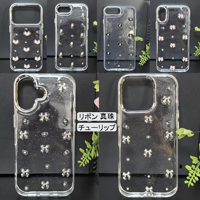 YUYIB スマホケース 対応 クリアケース 透明 キラキラ フラッシュ リボン 真珠 チューリップ かわいい スフとTPU 傷防止背面 滑り止め 衝撃吸収 おもしろい キャラクター ストラップ穴 女性人気 携帯電話カバー