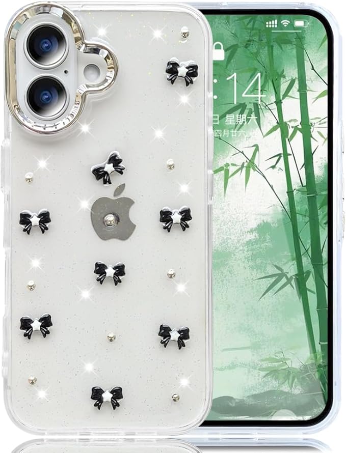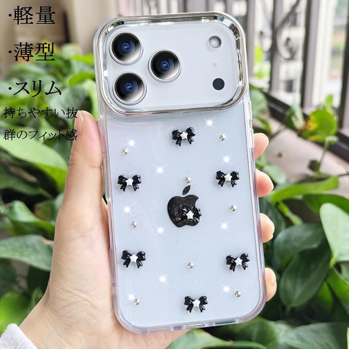 スマホケース 対応 iPhone 17 Pro Max クリアケース 透明 キラキラ フラッシュ リボン 真珠 チューリップ かわいい スフとTPU 傷防止背面 滑り止め 衝撃吸収 おもしろい キャラクター ストラップ穴 女性人気 アイフォン17プロマックス 携帯電話カバー (01, iPhone17 Pro Max)