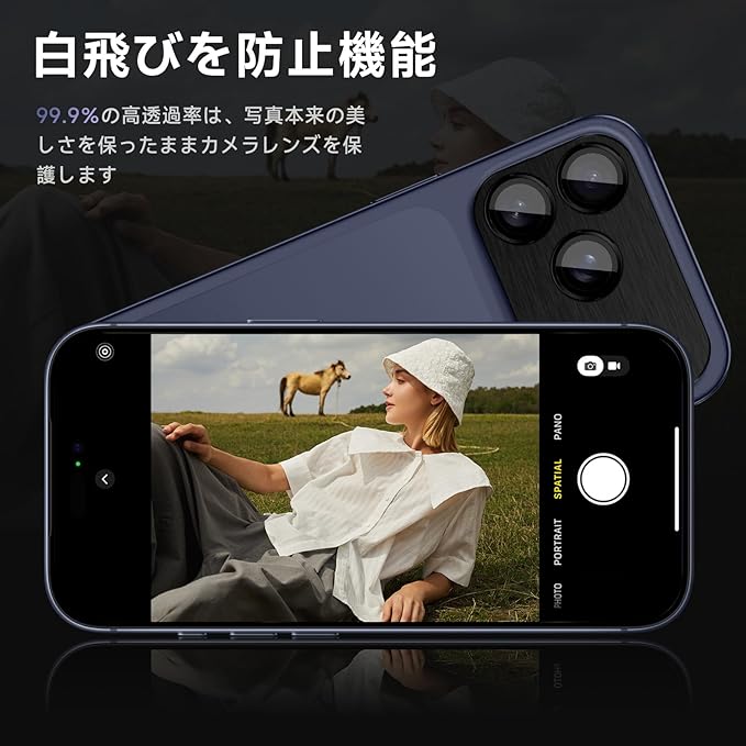 【白飛びを防止機能】iPhone 17 Pro Maxカメラレンズにはフラッシュ撮影でカバーが光ってしまう現象を防止し,フレアシールドにも対応で,被写体が更に鮮明で白飛びしないので、写真や動画の明るい部分が鮮明で,階調を保ちます。(※ご注意:本製品は露出オーバーを完全に防ぐものではありません。)