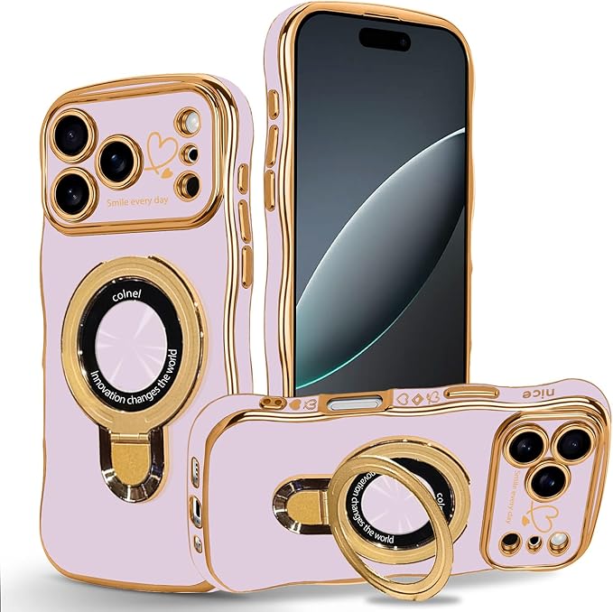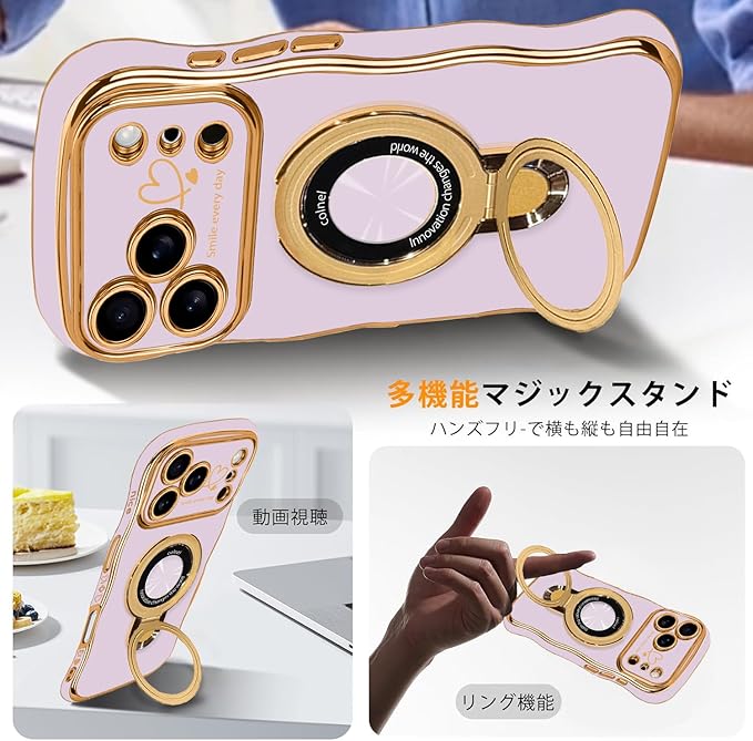 iPhone 17 Pro Max 専用 ケース ハート TPU ウェーブ 柔軟なシリコン アイフォン17プロマックス スマホケース おしゃれ メッキ加工 ソフト 軽量 耐衝撃 可愛い 携帯電話カバー(パープル)