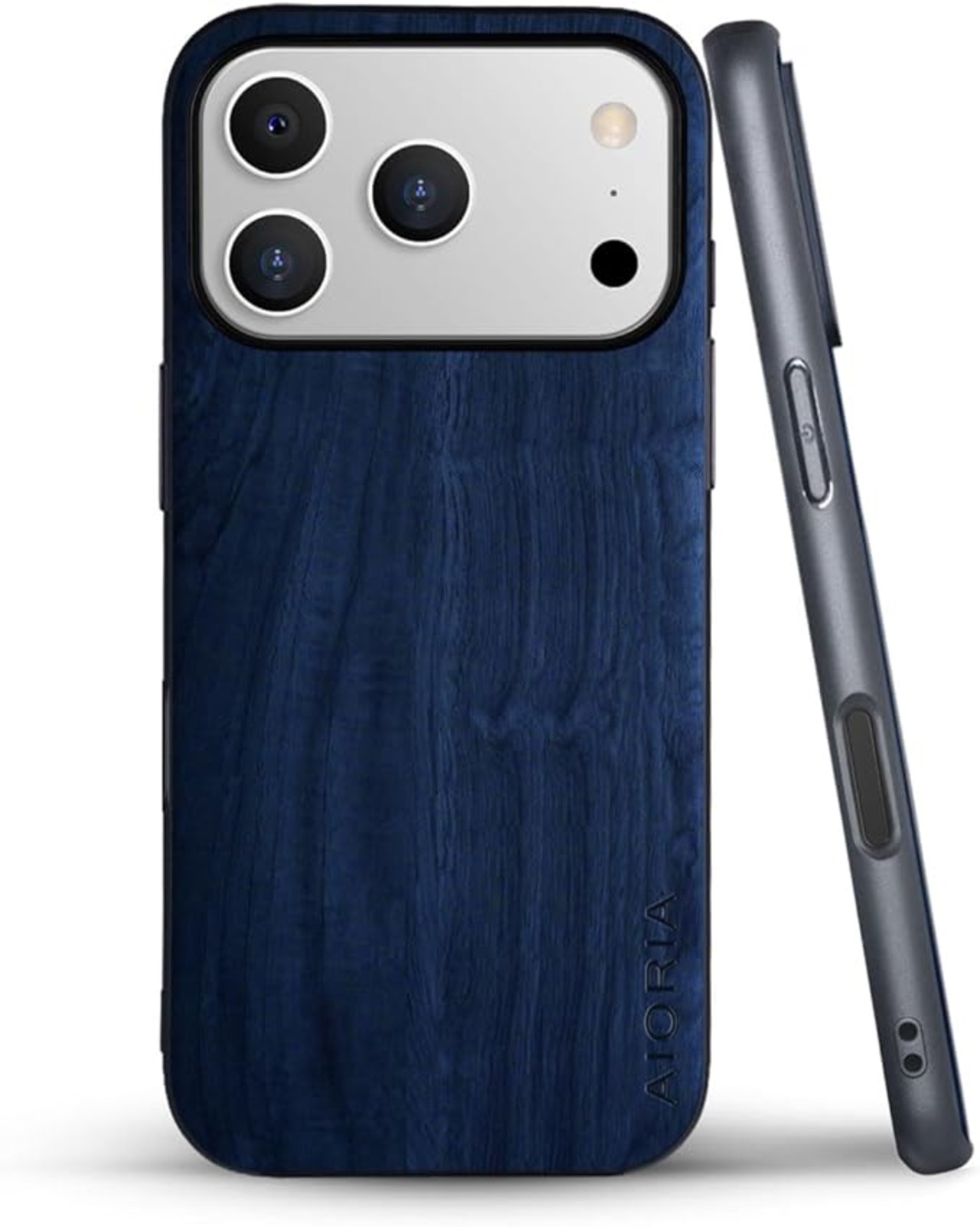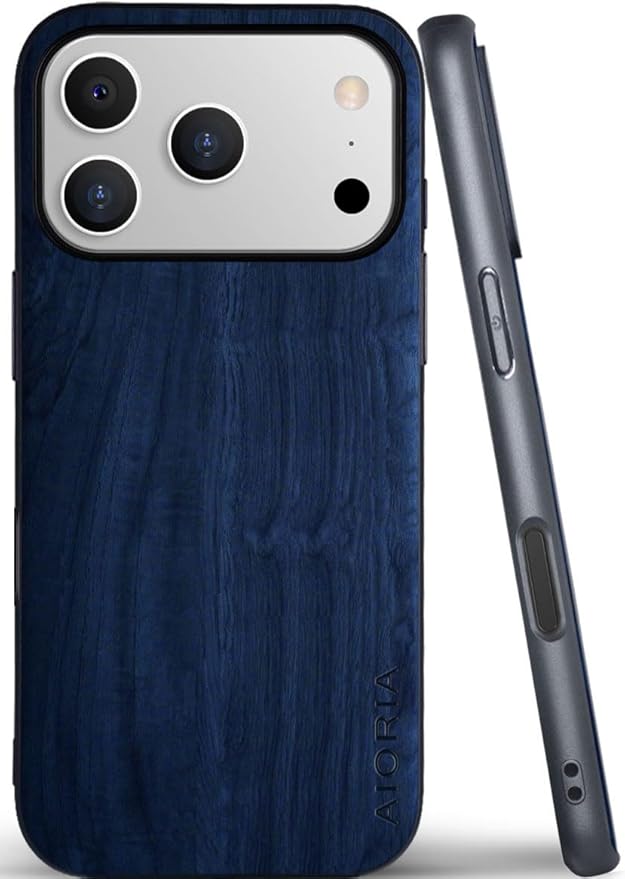 Aioria スマホケース iPhone 17 Pro Max 互換性ありウッドパターン スタイリッシュで丈夫な携帯電話ケース あふれる 木目柄 保護 (Dark Blue, For iPhone 17 Pro Max)
