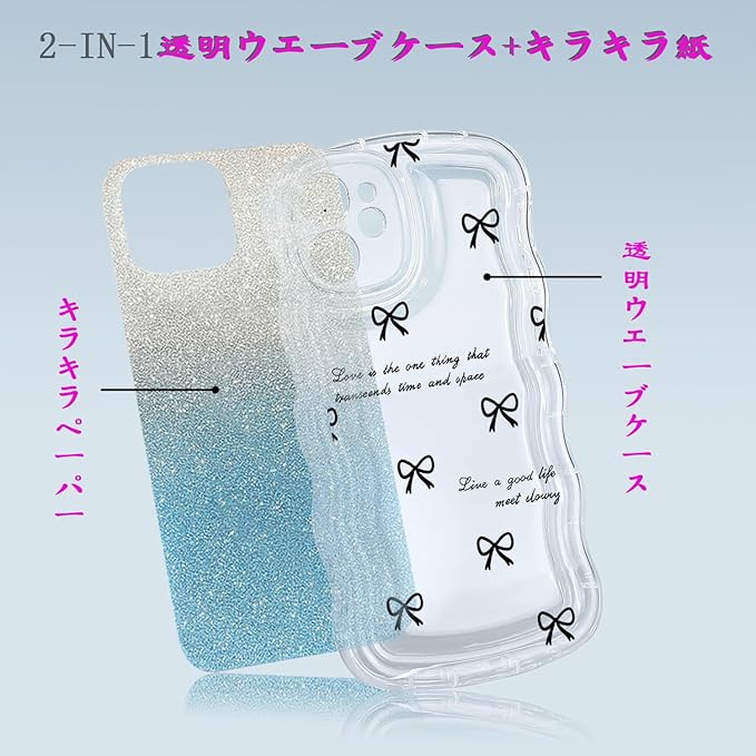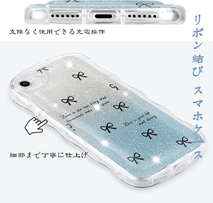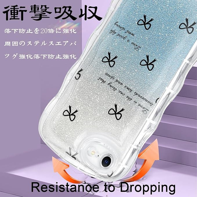 【ウェーブ縁】アイフォンiPhone用透明キラキラケースは柔らかいTPU製で、耐傷性、耐指紋性、耐衝撃性に優れ、取り外しも簡単,お手入れし易い。
