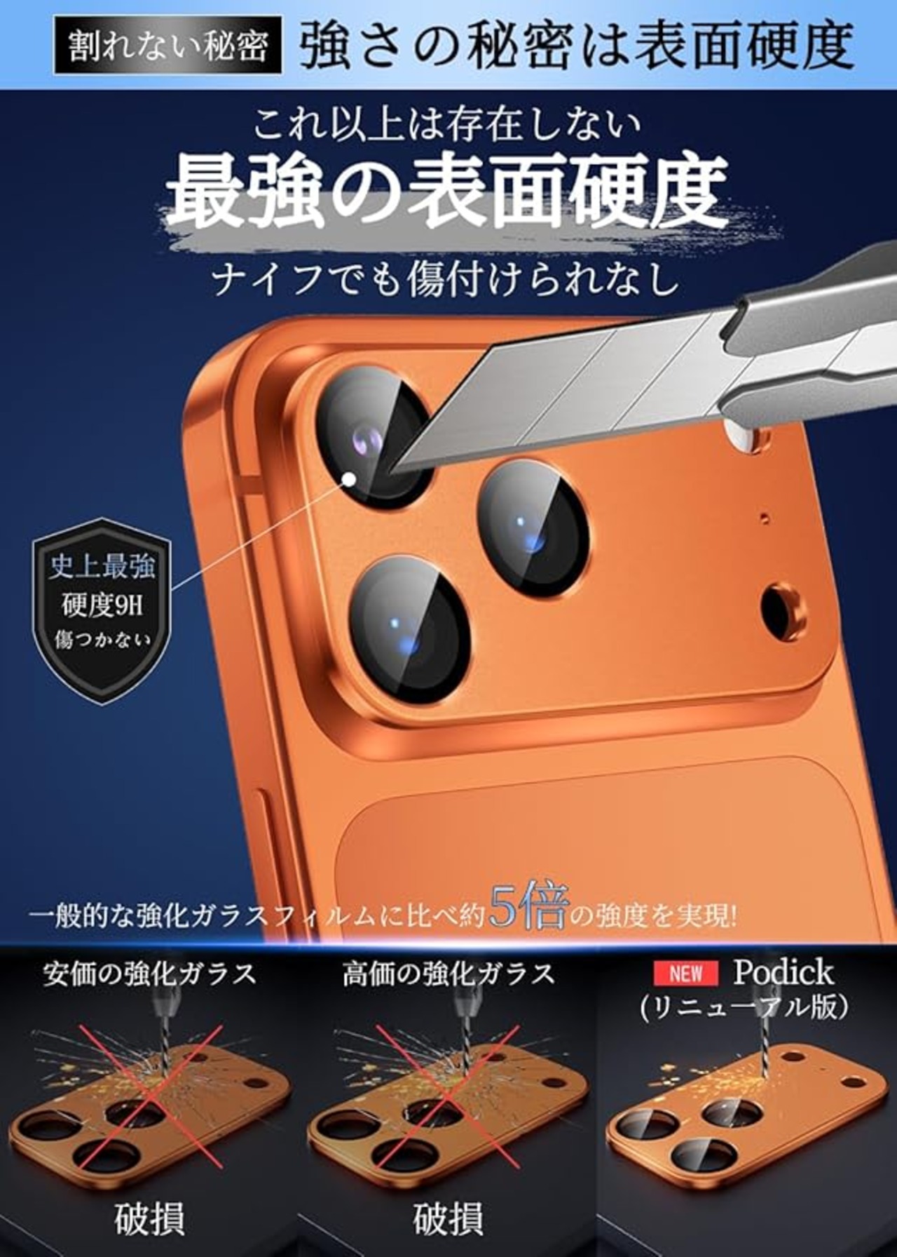 特徴 9H 表面硬度, 耐汚性, 耐衝撃性, 防指紋, 高精細な鮮明度