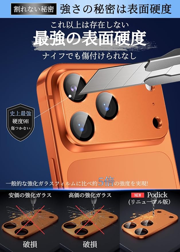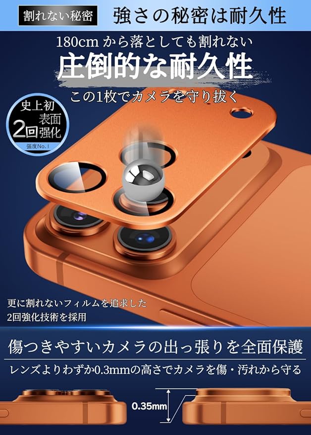 【4代目進化版&全面保護&一体感】iPhone 17 Promaxのサイズに合わせて1:1で精密に設計されており、レンズ部分だけではなく、四角い台座部分もカバーする一体型のデザインで、レンズに最高な保護力を提供しています。そしてケースと干渉しません。フィルムを貼った後でもスマホ本来の上質な美しさと高級感を損なわず、いつものスマホに上品さをプラスします。