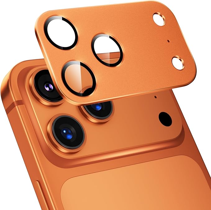 カメラカバー iPhone 17 Pro Max 用 カメラ保護 いPhone 17 Pro Max 対応 レンズカバー 全面保護 9H強化ガラス アルミ合金 耐衝撃 キズ防止 高透過率 黒縁取り 露出オーバー防止 防滴 防塵 貼り付け簡単 自動吸着 気泡ゼロ アイフォン17 プロマックス レンズフィルム(オレンジ)