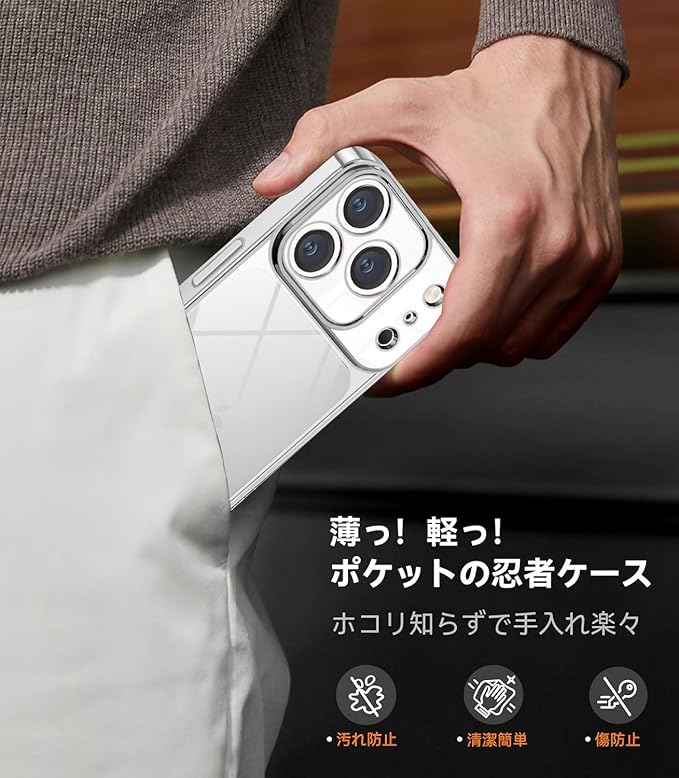 【究極の美しさ・99.99%の透明感】高透明度TPU素材を採用し、装着・脱着も簡単。スマホ本来の美しさをそのまま引き立てます。変色や劣化を徹底的に防止。透明度と高級感を存分に楽しめます。手にしっかり馴染み、滑り落ちる心配もありません。