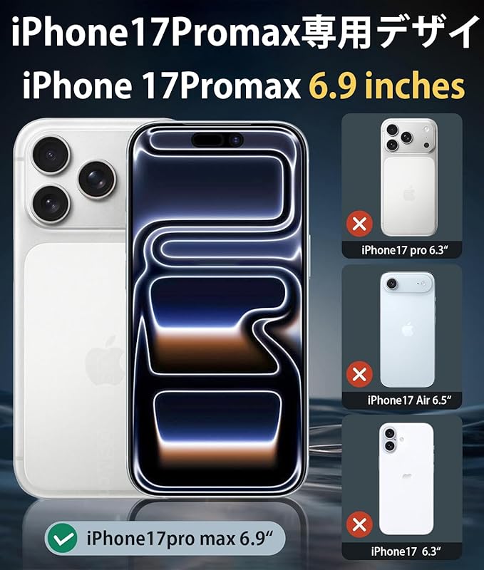 【対応機種】iPhone 17 Pro Max 用 ケース に対応なので、機種を間違いないようご注意下さい。