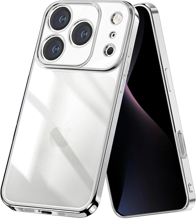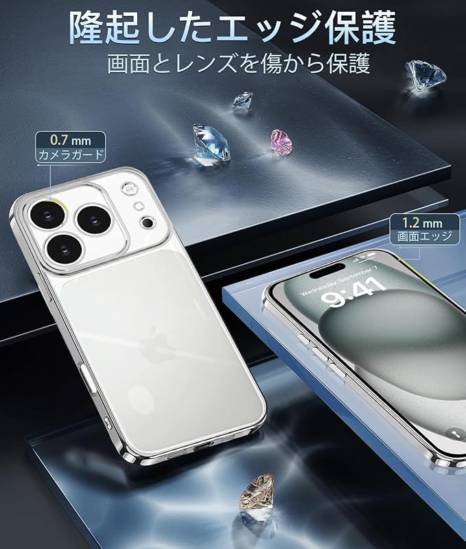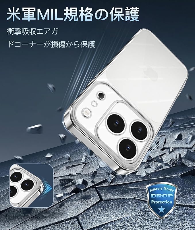 iPhone 17 Pro Max 用 ケース クリア 米軍MIL規格 TPU 透明 黄変防止 耐衝撃 高耐久性 ストラップホール付き ワイヤレス充電対応 あいふおん17ProMax用ケース 全面保護カバー(シルバー)