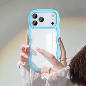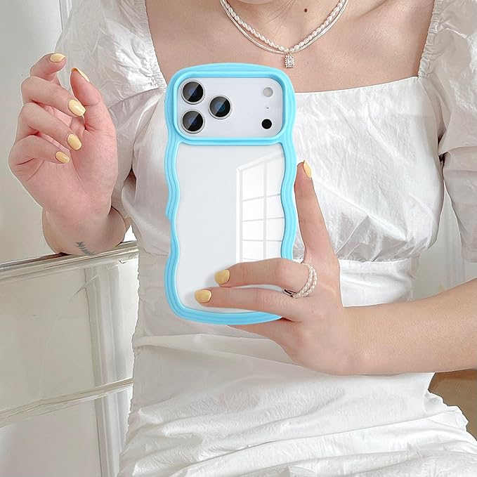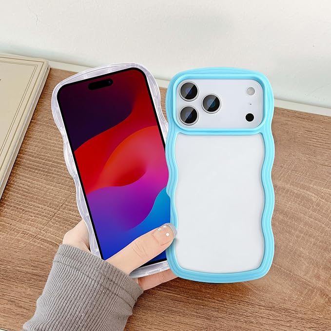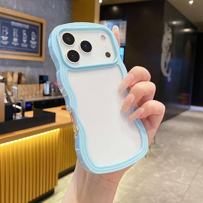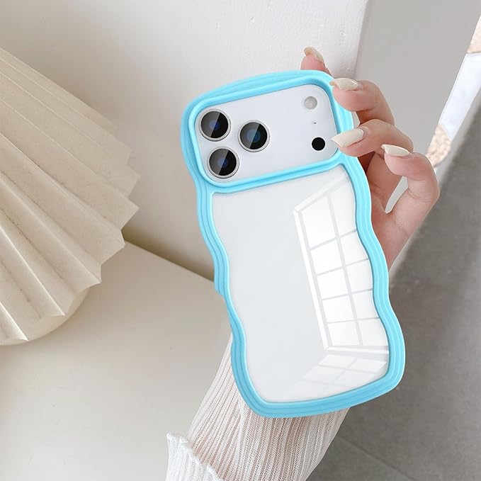UEEBAI 対応 iPhone 17 Pro Max 用の ケース ソフト TPU カバー 可愛い おしゃれケース 透明 ウェーブ デザイン スマホケース ワイヤレス充電対応 軽量 薄型 耐衝撃 人気 波型 バンパー スマホケース - シエラブルー