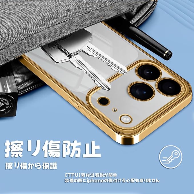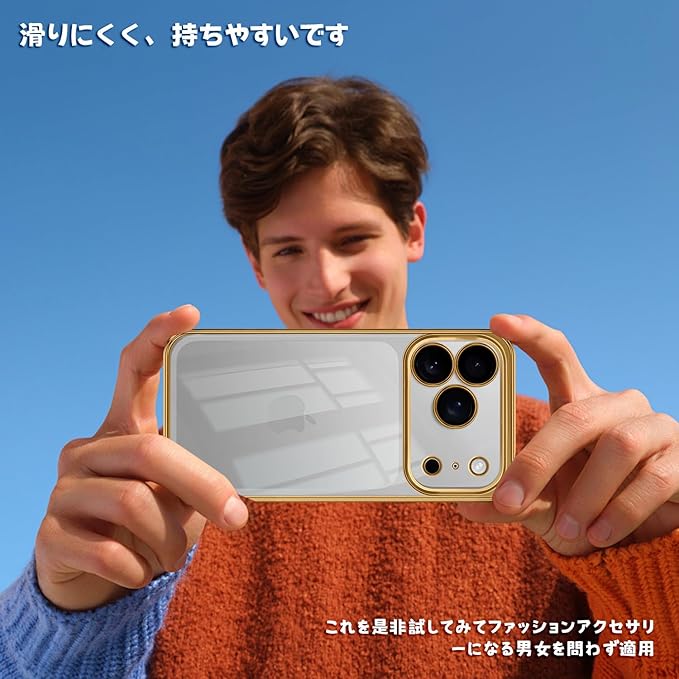 【驚きの透明感・メッキ加工】iphone 17 Pro Max 用ケースの背面は透き通った高い透明度を誇り、フレームは多層メッキ加工技術によって設計。オシャレで独特の輝きを放ち、シンプルで高級感溢れています。iPhone17 ProMax の美しさはそのままに本体を保護しているのです。そして、これはアイホン 17ProMax の指紋認証を完全にサポートします。
