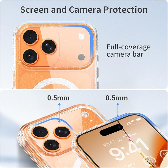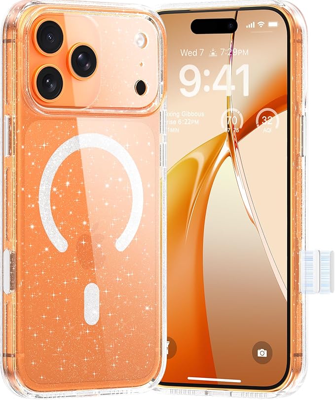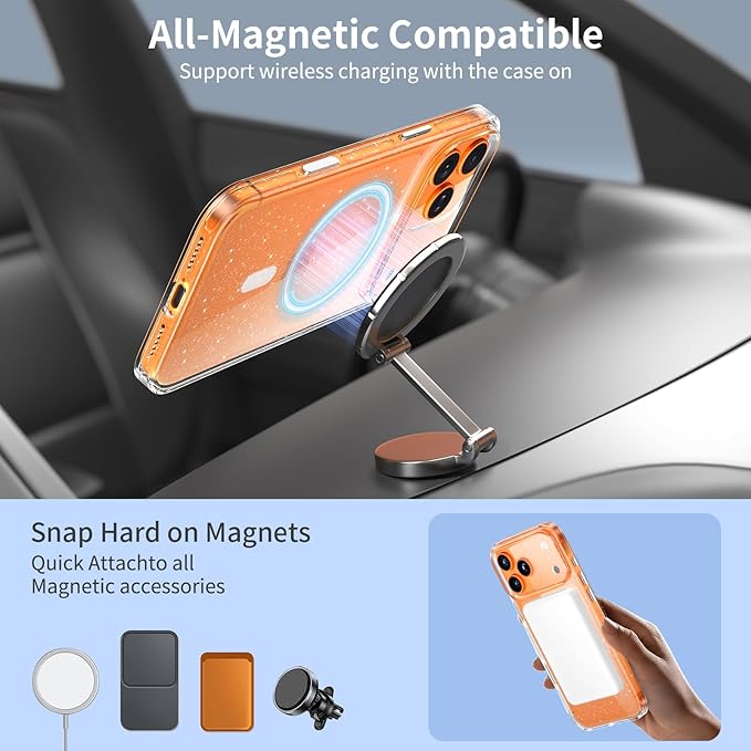 「memumi」クリアケースiPhone 17 Pro Max用の スマホケース マグネットリングがキラキラ 光沢感 フルカバーボタン耐衝撃