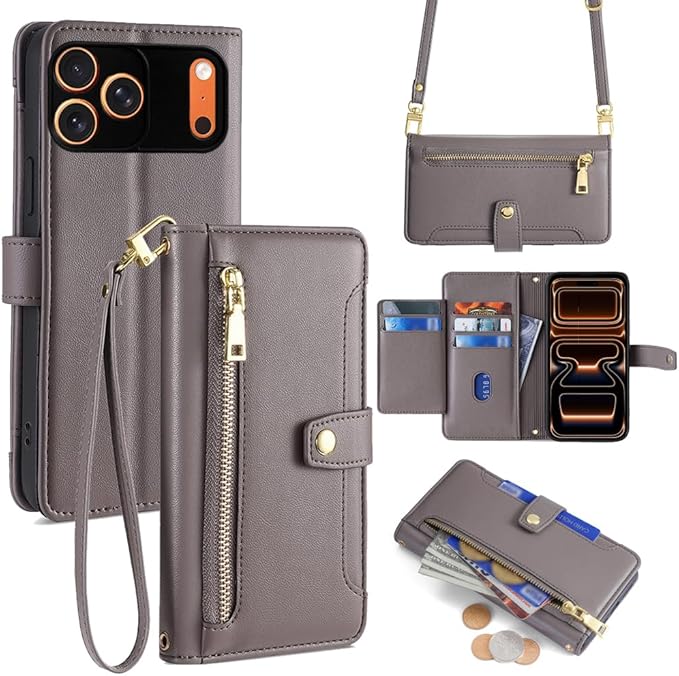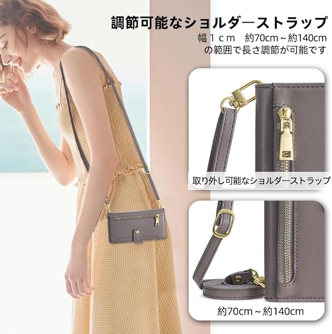 手帳型ケース ショルダーケース iphone 手帳型 ショルダーケース レザー for iPhone 17Pro Max 斜め掛けと手持ちー スマートフォンケース 財布型 対応 アイフォン 肌触り良い 便利