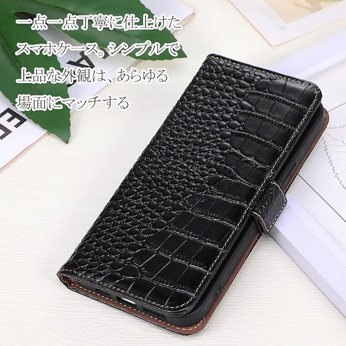 for iphone 17 Pro max ケース 手帳型 本革 ワニ柄 for アイフォン 17 プロ マックス 牛革 財布型 鰐柄 クロコダイル柄 耐衝撃 [RFIDブロッキング] カード収納 マグネット式ボタン 横置きスタンド機能 便利 財布型携帯 スマホケース ブラック Rureu