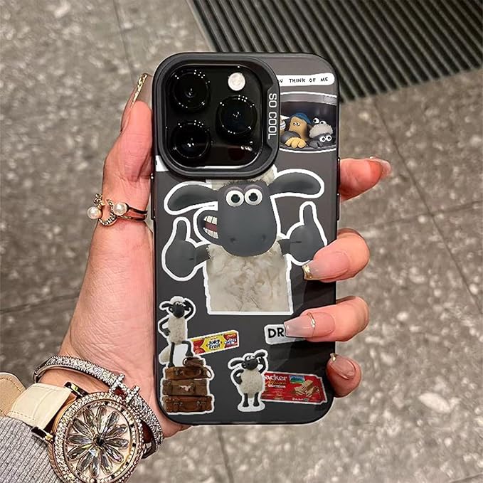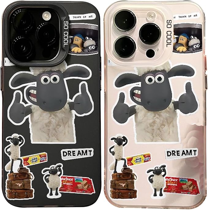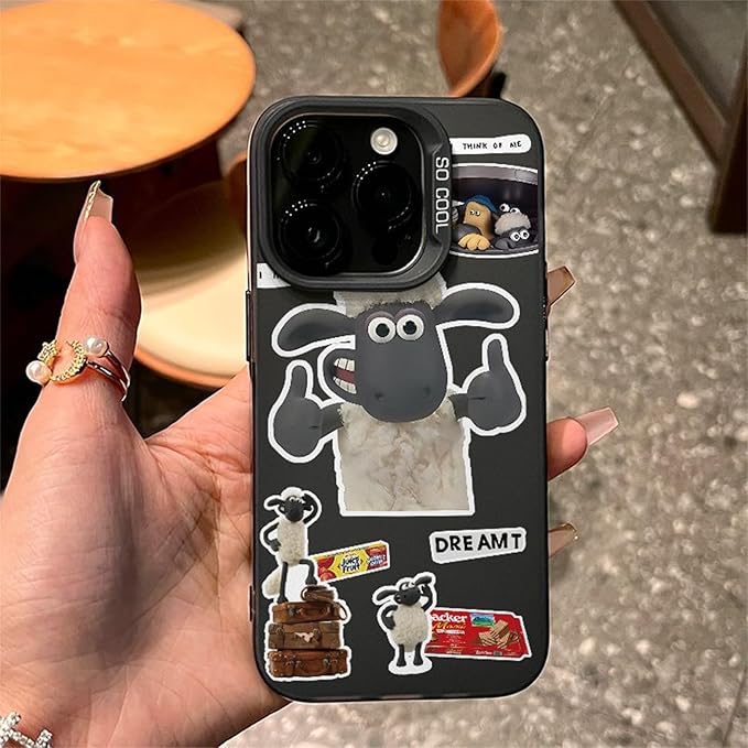 Arpe ひつじのショーン スマホケース 耐衝撃 iPhone 17 Pro Max 用 ケース レンズ保護 アイフォン 17 Pro Max 用 ケース (6.9インチ)ハッピー カラー(白 B)
