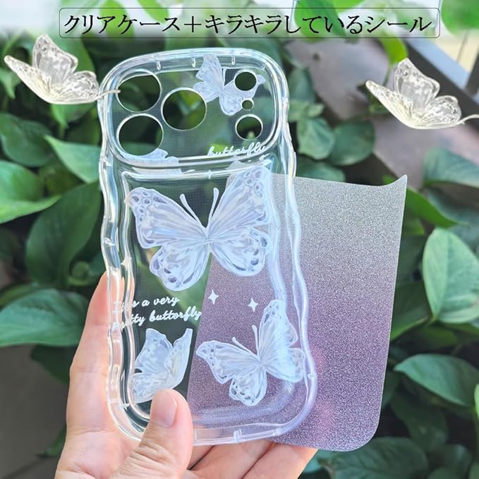 JOOBOY スマホケース 対応 クリア 透明 キラキラ 蝶々 波型 かわいい tpu ソフト 薄型 軽量 女性人気 キャラクター 衝撃吸収 指紋防止 ストラップホール付き 対応 携帯ケース