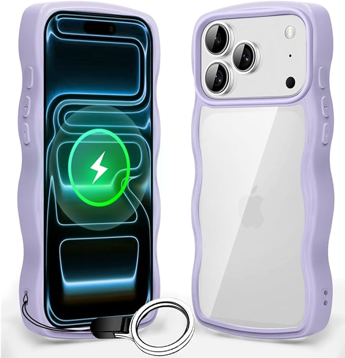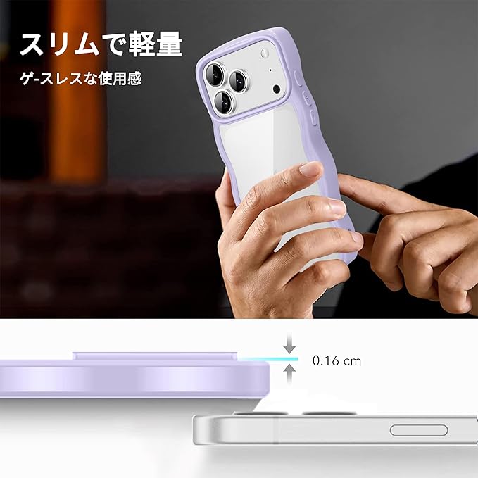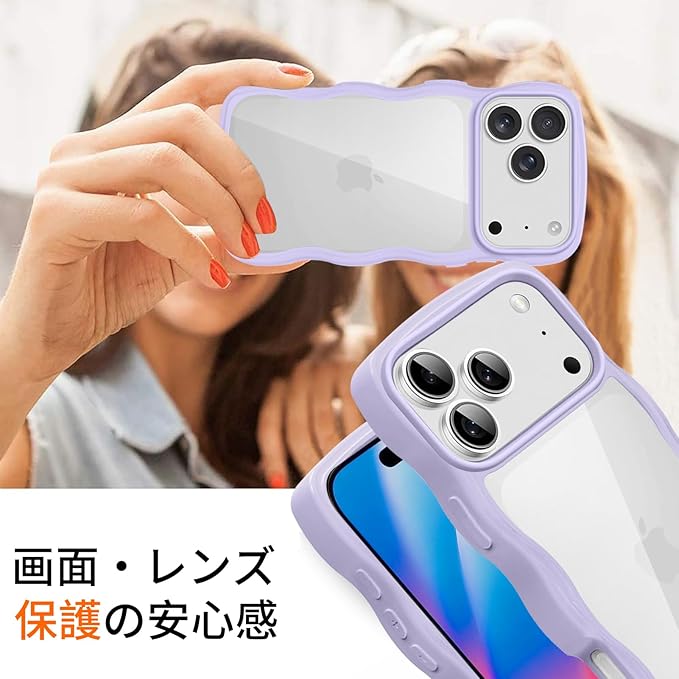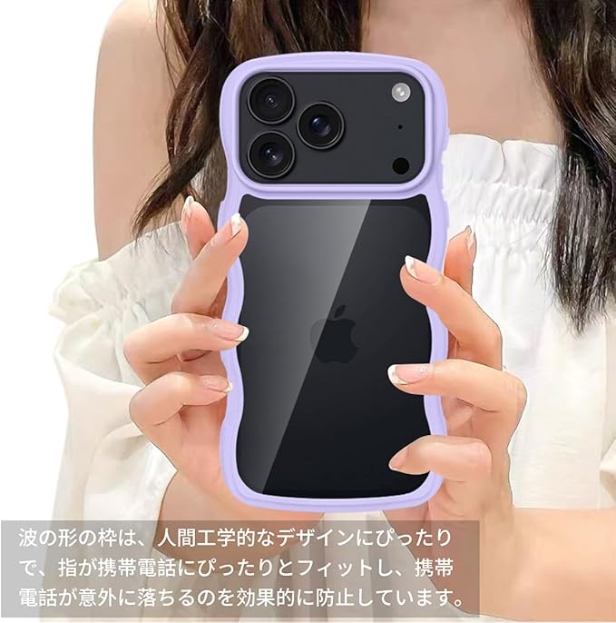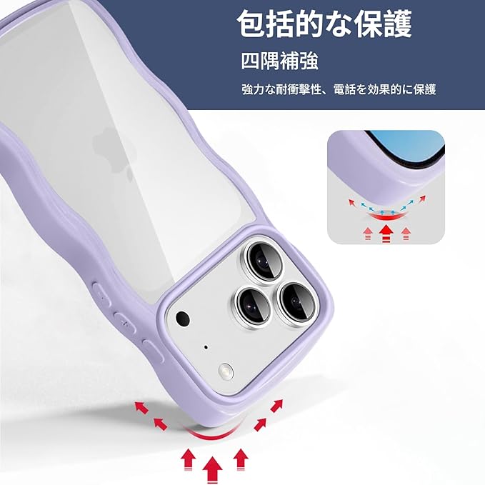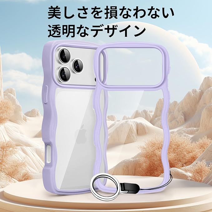 iPhone 17 Pro Max 用 ケース クリア 耐衝撃 アイフォン 17 Pro Max 用 カバー 人気 スマホケース 薄型 軽量 透明 TPU ワイヤレス充電対応 ストラップホール付き (パープル)