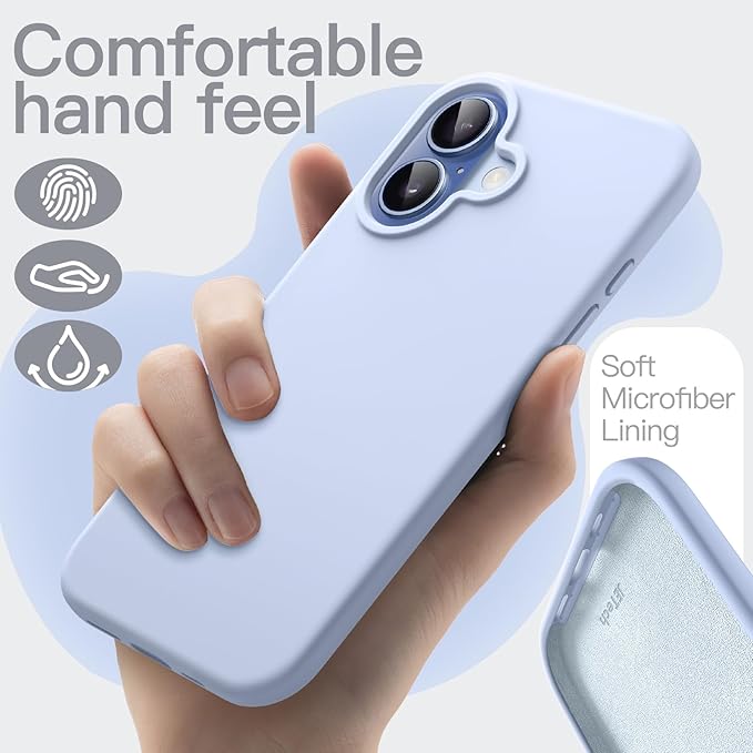 JETech iPhone 17 6.3インチ用 液体シリコンケース シルキーソフトタッチ 全面保護 マイクロファイバー裏地付き 傷防止 耐衝撃スマホカバー (ブルー)