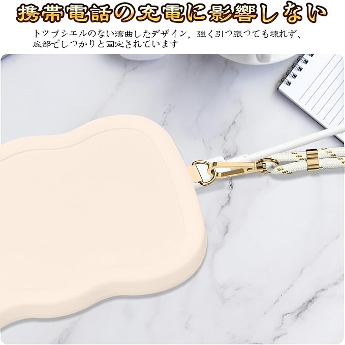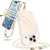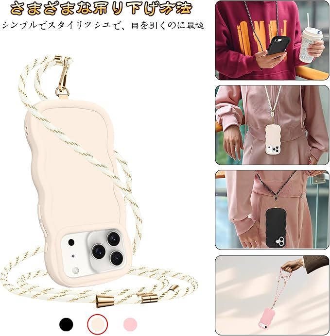 ケース 用の iPhone 17 Pro Max ショルダー シリコン 波形 かわいい カバー 肩掛け 斜めかけ 軽量 耐衝撃 紐付き 織りストラップ付き ネックストラップ 長さ調整可能 取り外し可能(ホワイト)