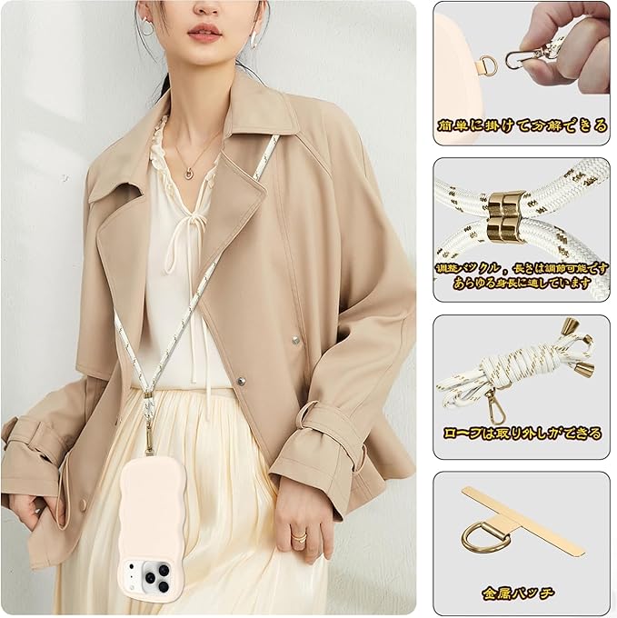 【多目的キャリー & ファッションデザイン】調節可能ショルダーストラップ長さ1.5メートル、可斜めがけ、可肩掛け。調節可能なストラップにより、サイド、またはフロントに持ち運べるときに完璧にあなたの隣に掛けることができます。 このアクセサリーはファッションだけでなく、通常のストラップよりも快適で実用的です。 作業、旅行、出張、ショピング、散歩、コンサート、パーティーに最適です。手を離しても、携帯電話を携帯できます。