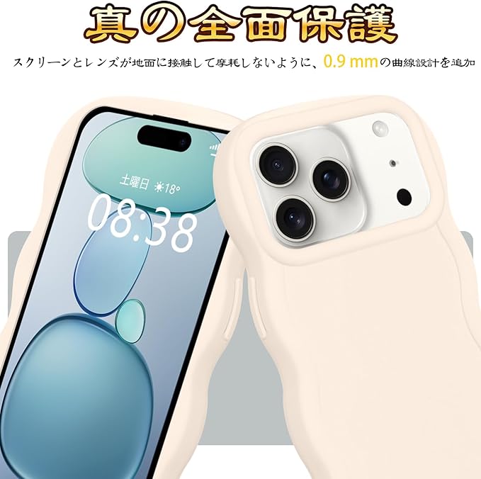 【全面保護・滑り止め機能】カメラレンズの周りに段差をつけて擦り傷を防ぎます。携帯電話ケースの側面は波型のデザインを採用しており、グリップが良く、携帯電話が誤って落下するのを効果的に防ぎます。