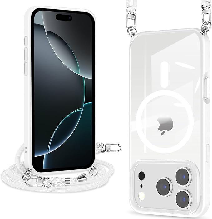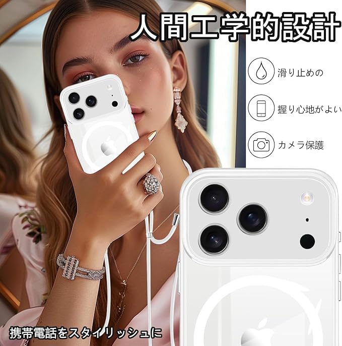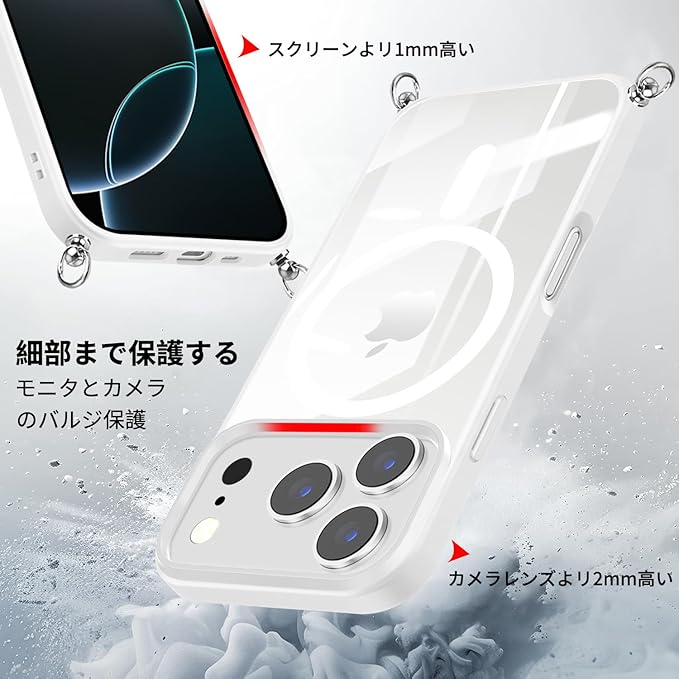 iPhone 17 Pro Max 用 ケース クリア ショルダー MagSafe対応 ワイヤレス充電 アクリル背面 耐衝撃 マグネット搭載 アイフォン17プロマックス ケース マグセーフ対応 耐久性 滑り止め 黄変防止(ホワイト)