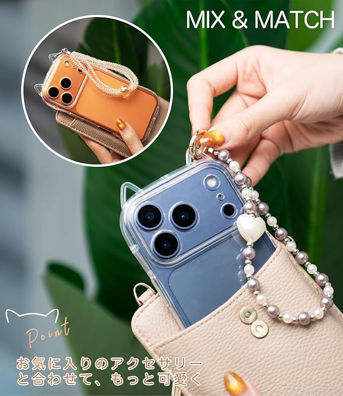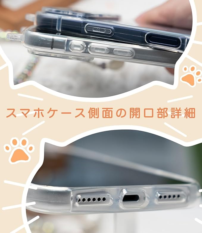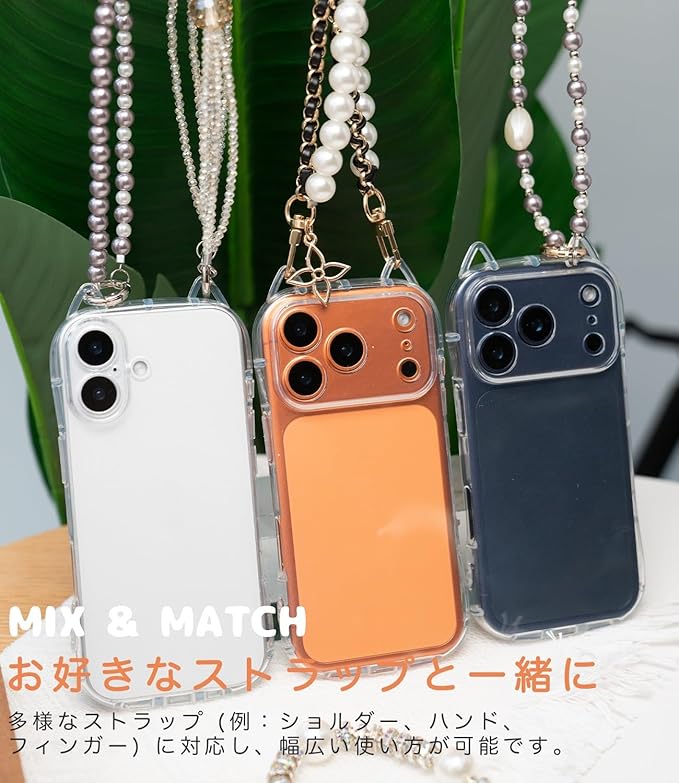 【さりげなく可愛い 透明ケース】ストラップを付けたい時だけ装着でき、外せばシンプルなクリアケースとして使えるため、シーンに合わせて使い分けが可能です。スマホ本来の美しさを楽しみながら、必要な時にだけストラップの便利さを得られます。