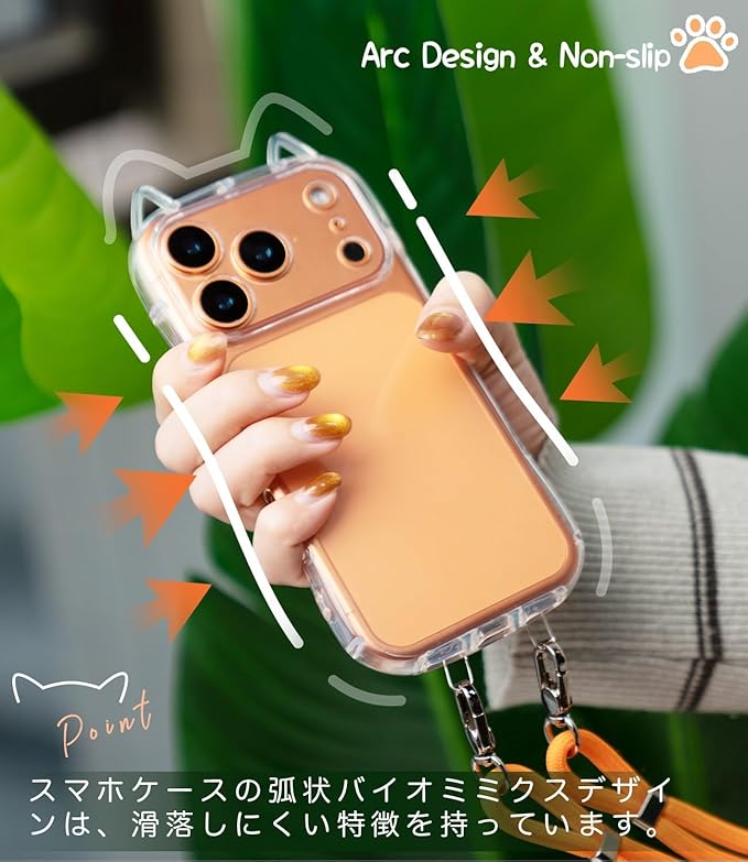 ケース iphone 用 17 promax 猫耳 スマホケース 17プロマックス クリア ストラップ 付き ねこみみ 可愛い ショルダー クリスタル 透明 カバー スマホ おしゃれ バンパー 耐衝撃 落下防止 大人かわいい 女子 女の子 斜め掛け 肩掛け 首掛け 推し活 グッズ 衝撃吸収 黄変防止 TPU ストラップホール付き カメラ保護 エアークッション 17 pro max