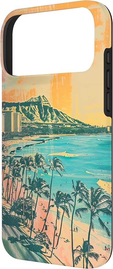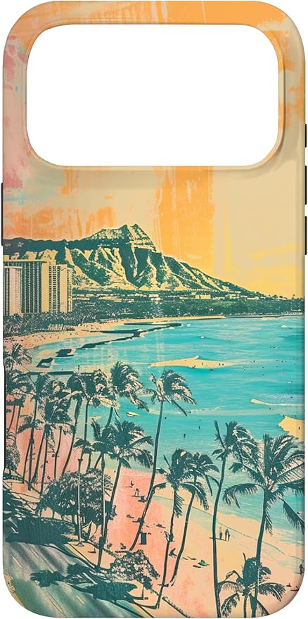 ヴィンテージ ハワイアン ビーチ ミニマリスト ヴェイパーウェーブ スマホケース iPhone 17 Pro Max 用