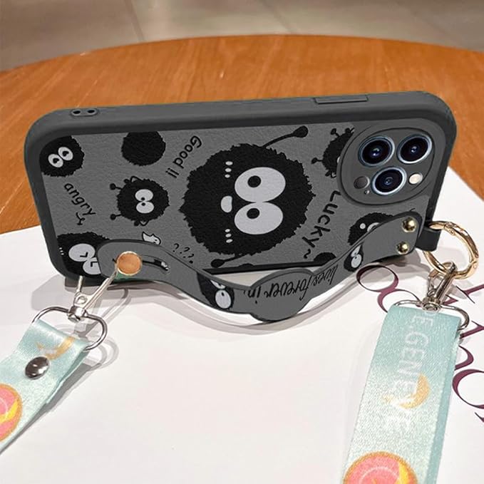 まっくろくろすけ かわいい スマホケース iPhone 17 Pro Max 用 ケース スマホケース アイフォン 17 Pro Max 用 ケース シリカゲル保護カバー スタンド機能 キックスタンド